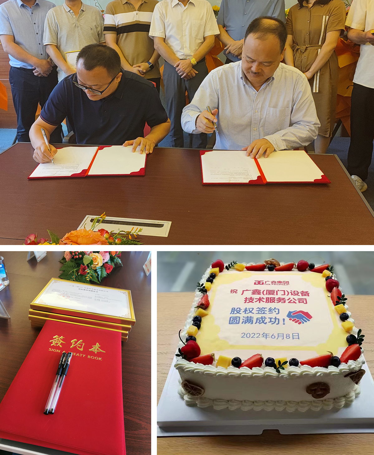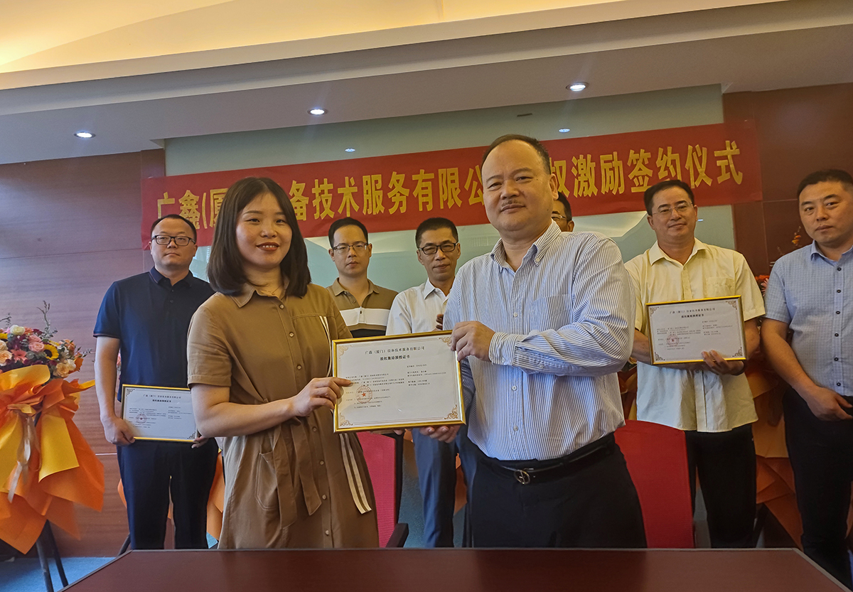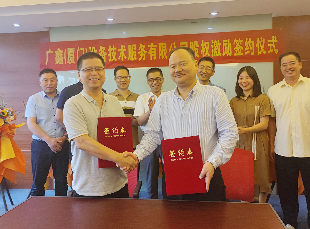 為實現(xiàn)企業(yè)與員工一起成長、共享成功的果實,2022年6月8日,廣鑫(廈門)設(shè)備技術(shù)服務(wù)有限公司股權(quán)激勵簽約儀式在廣鑫集團廈門總部正式舉行。
