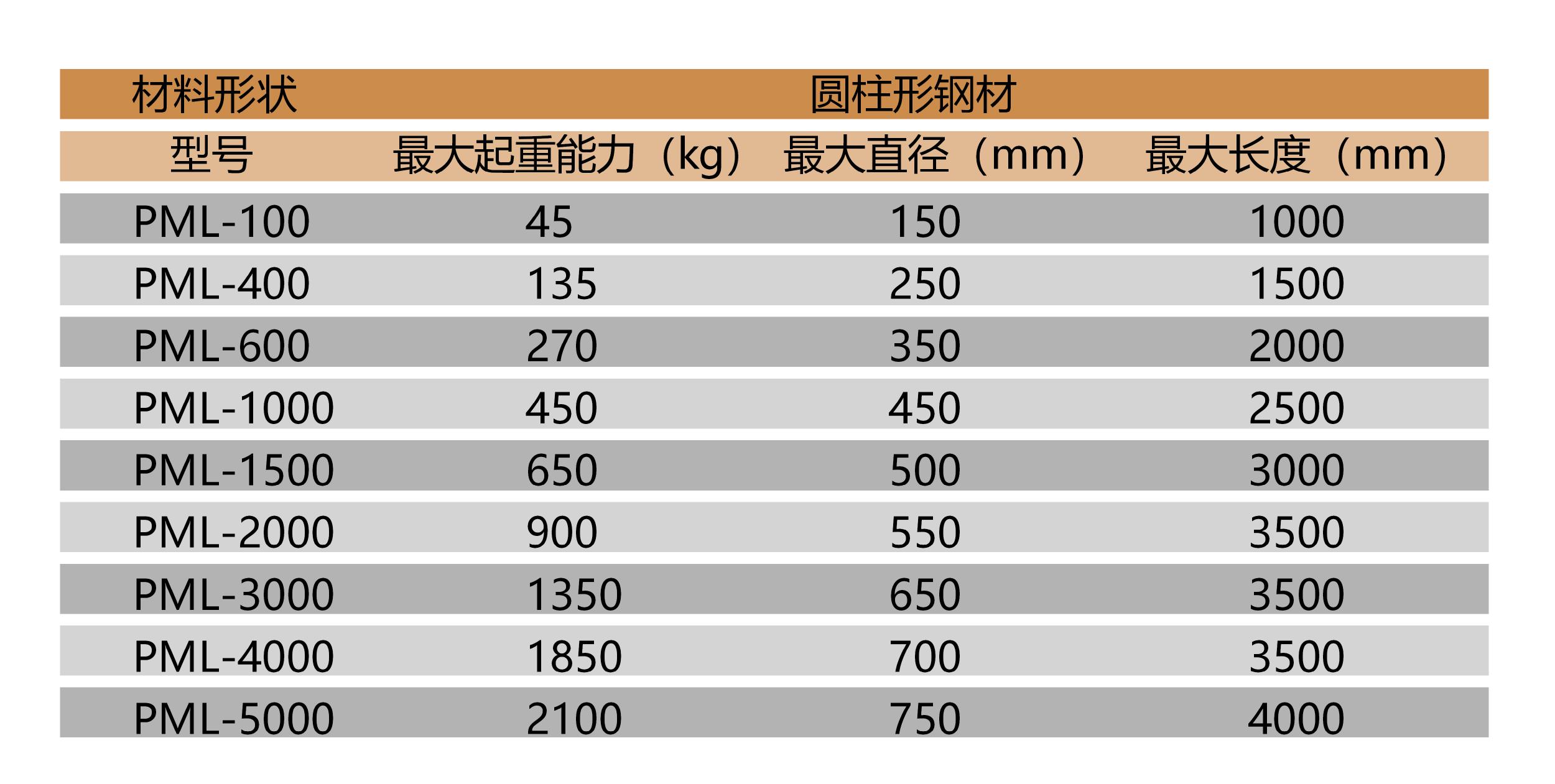 3)吊運圓柱形工件時,應(yīng)將永磁起重器底部的V字型槽與圓柱形工件表面接觸,但起吊能力一般為實際工作載荷的30%—50%,下表數(shù)值作為參考。