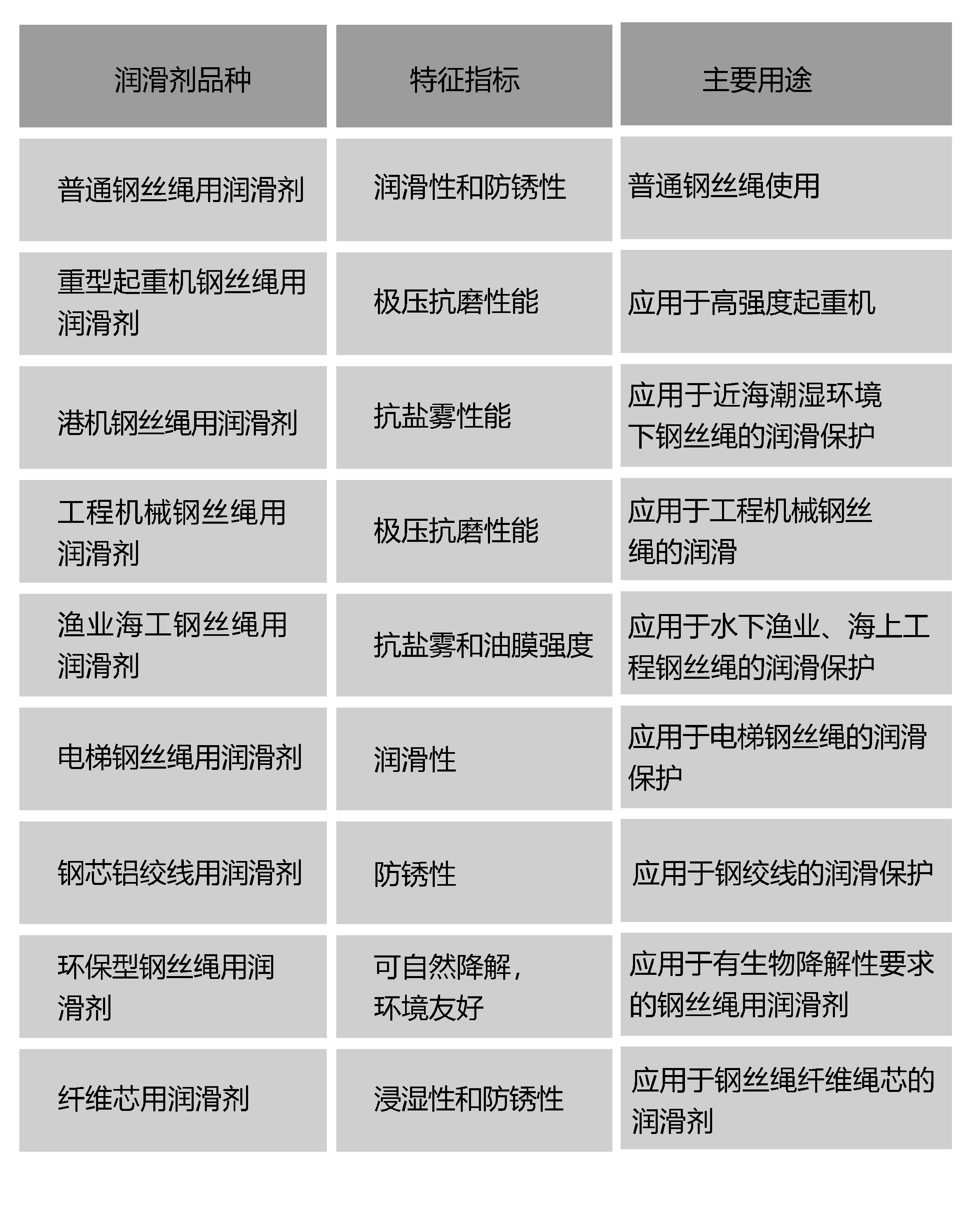 表1:鋼絲繩生產(chǎn)用潤(rùn)滑劑分類