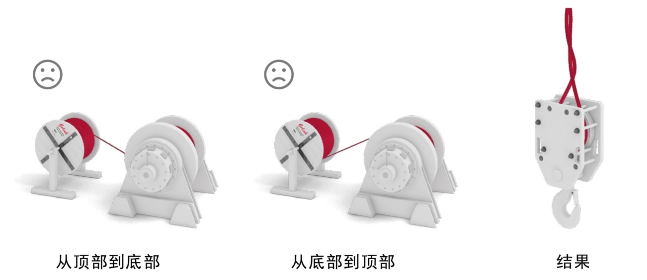 新繩在安裝過(guò)程中,由于不正確的操作帶入扭轉(zhuǎn)應(yīng)力。