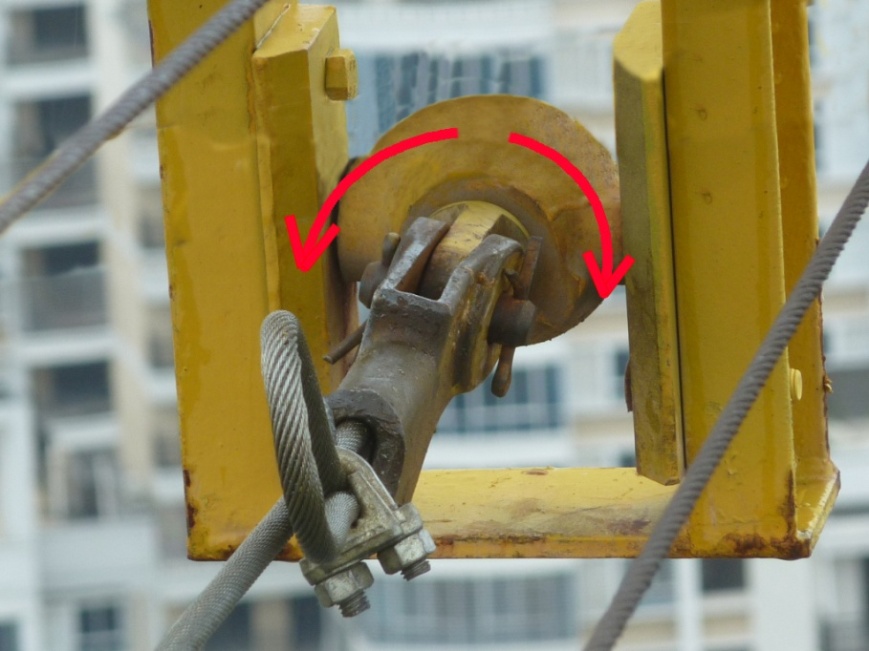 起重設(shè)備自身因素,例如滑輪輪槽磨損后直徑偏小,無(wú)法與新繩適配,以及傾角偏大等因素,都有可能造成扭轉(zhuǎn)應(yīng)力累積,繼而引起吊鉤旋轉(zhuǎn)。