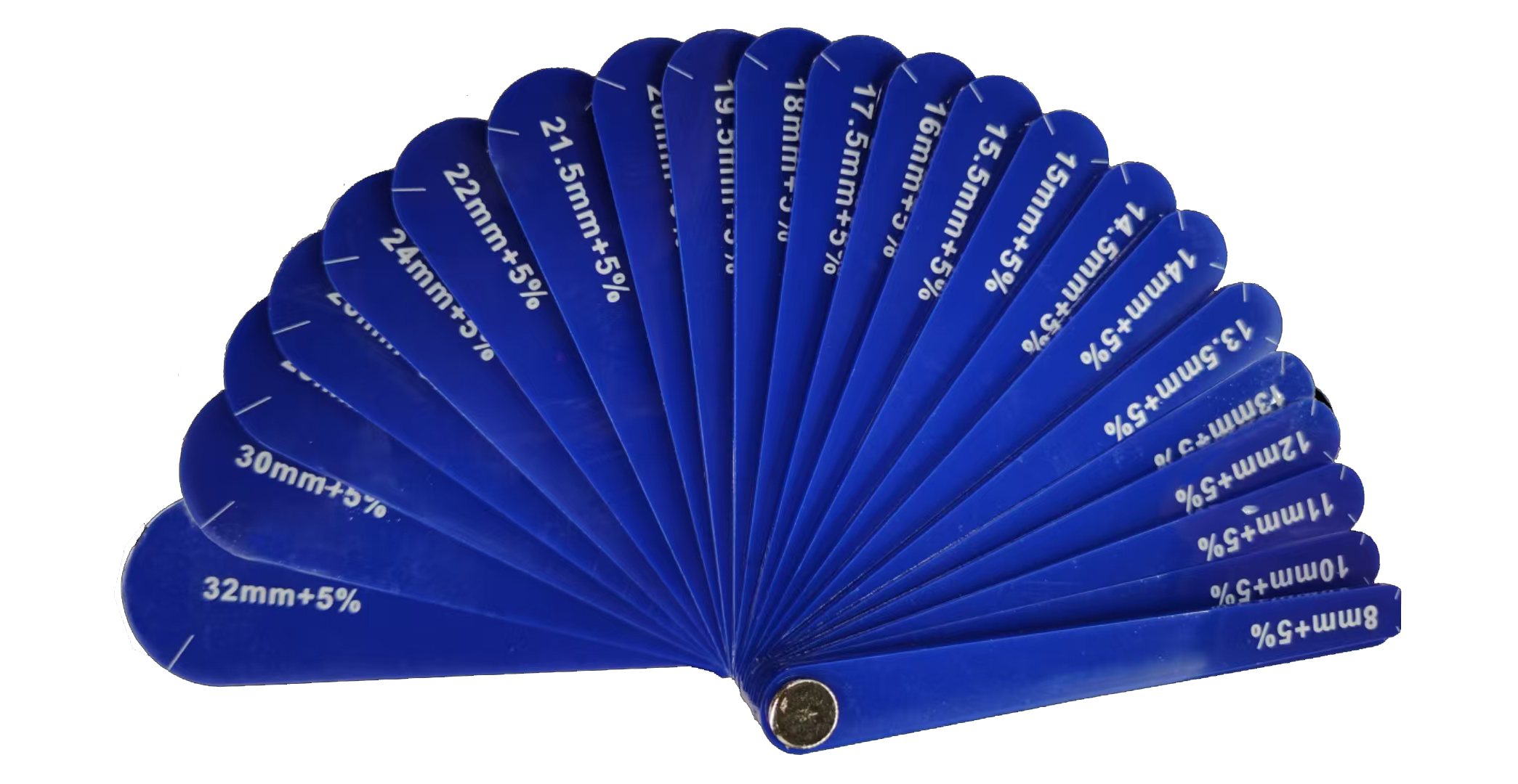 繩槽直徑應(yīng)用半徑規(guī)(R規(guī))或滑輪量具進(jìn)行測(cè)量(圖1),R規(guī)一端帶有各規(guī)格直徑的半圓形弧面,根據(jù)半圓形弧面與繩槽貼合狀態(tài),檢查與確認(rèn)繩槽是否符合標(biāo)準(zhǔn)要求?;喤c卷筒繩槽直徑的檢測(cè)方法如下: