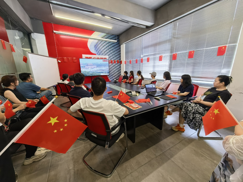 2025年9月3日上午9時(shí),紀(jì)念中國(guó)人民抗日戰(zhàn)爭(zhēng)暨世界反法西斯戰(zhàn)爭(zhēng)勝利80周年閱兵式在天安門廣場(chǎng)盛大舉行。廣鑫集團(tuán)提前統(tǒng)籌安排,廈門總部、福州公司、太倉公司等各部組織員工們齊聚公司會(huì)議室,共同見證這一承載歷史重量、彰顯大國(guó)力量的莊嚴(yán)時(shí)刻,整場(chǎng)觀看活動(dòng)在莊重而熱烈的氛圍中進(jìn)行。