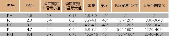 標(biāo)識:多楔帶一般分為工業(yè)多楔帶和汽車多楔帶,工業(yè)多楔帶型號有PH、PJ、PK、PL、PM;汽車多楔帶只采用PK這一型號。