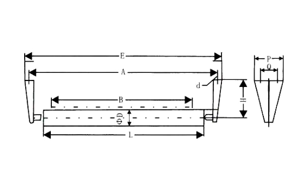 平行下托輥是輸送機托輥組的組成部分。托輥兩端各有一個固定架,托輥的長度、吊架結(jié)構(gòu)以及安裝孔距應(yīng)能允許輸送帶具有適當(dāng)?shù)臋M向移動,不允許輸送帶邊緣同輸送機的任何固定部件或機架相接觸。