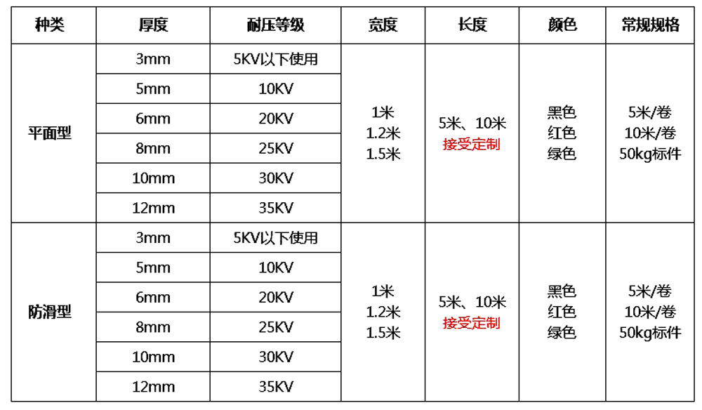 耐高壓絕緣膠墊參數(shù)表