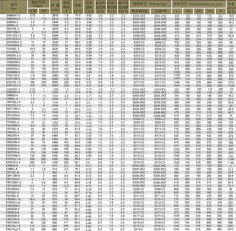 產品規(guī)格:EM系列