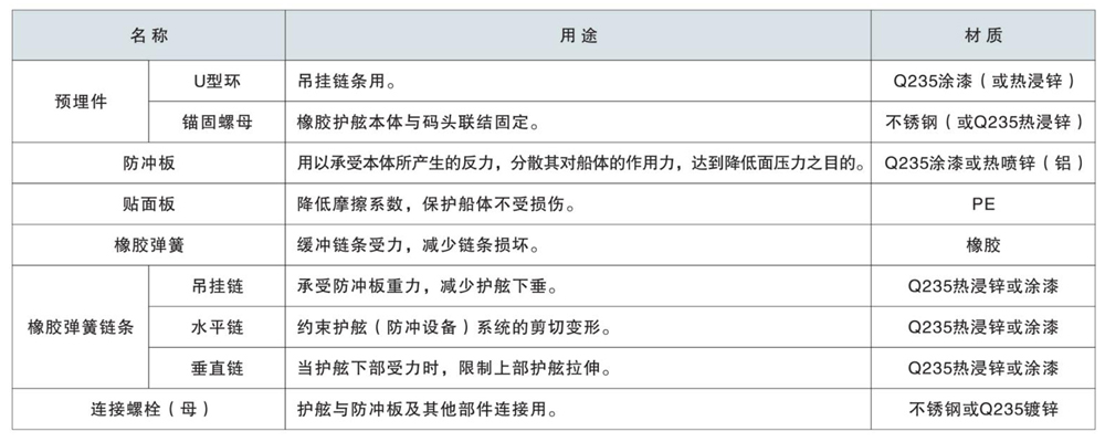 產(chǎn)品構(gòu)成:由橡膠護(hù)舷本體、鋼制防沖板及貼面板(鋼結(jié)構(gòu))組合而成