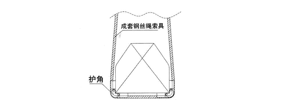 2、成套鋼絲繩索具過(guò)尖銳棱角時(shí),會(huì)使鋼絲繩提前新絲或芯露出,應(yīng)加護(hù)角或護(hù)套保護(hù)。