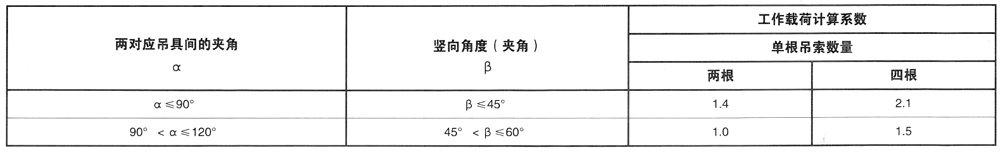 5、成套鋼絲繩索具的負(fù)載強(qiáng)度系數(shù)吊裝角度如圖所示