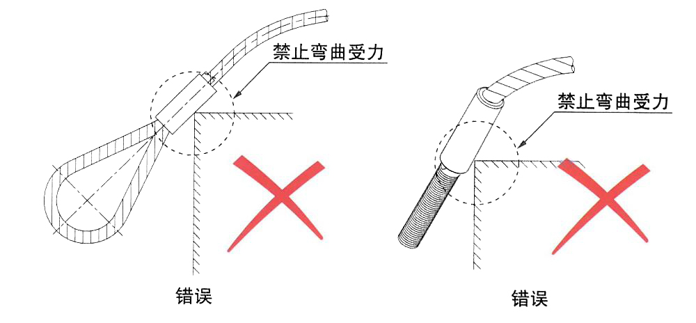 8、壓制鋼絲繩索具在運(yùn)輸、安裝和使用時(shí)避免曲受力,以免鋁管、壤紋、接頭或鋼絲繩受到損傷。