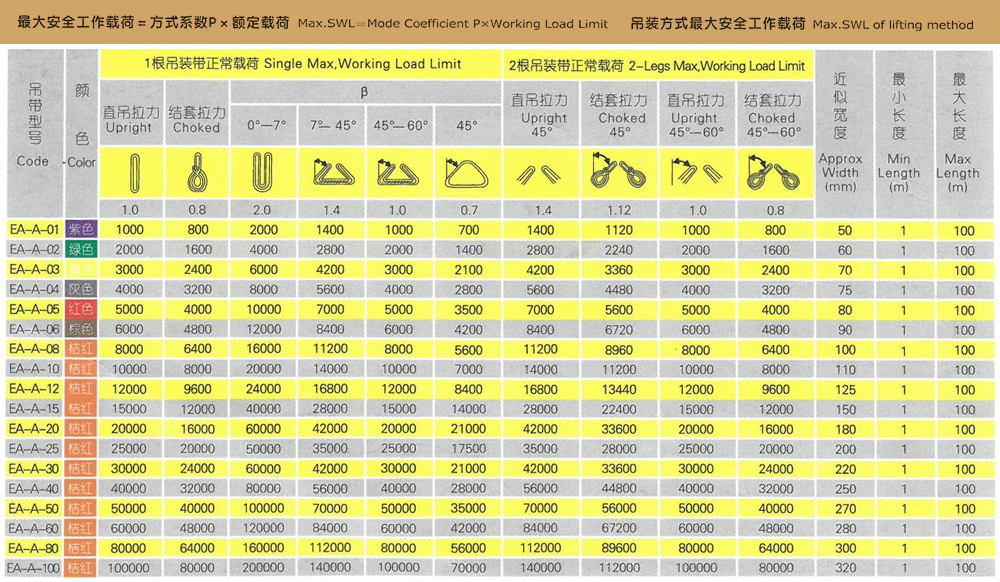 4、設有獨特標簽,并使用國際標準色來區(qū)分承載噸位,即使吊帯磨損也易于辨認。輕便柔軟,在狹小的空間也易使用。不導電,無觸電危險。
