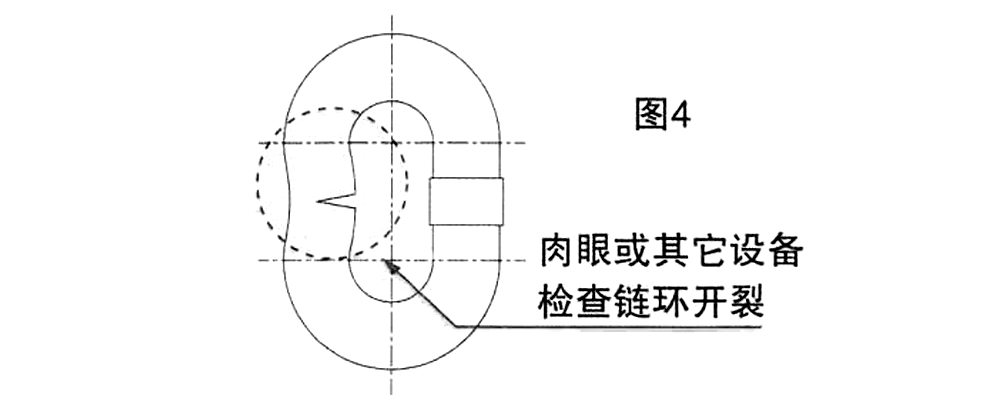 3、肉眼或其它設備檢查環(huán)焊接開裂或其它有害缺陷的鏈條時,應更換部件或報廢(如圖4)