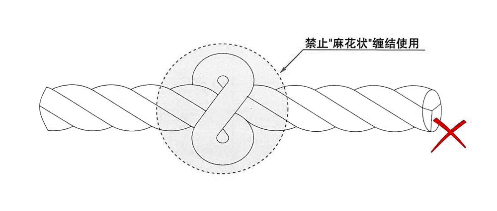 應(yīng)避免繩索打結(jié)形成環(huán)眼或通過打結(jié)方式縮短繩索,打結(jié)會(huì)使繩索的強(qiáng)度削弱50%