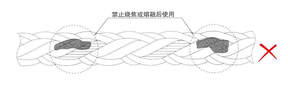 1、出現(xiàn)明顯的燒焦或熔融,長度大于4倍繩徑時(shí)。