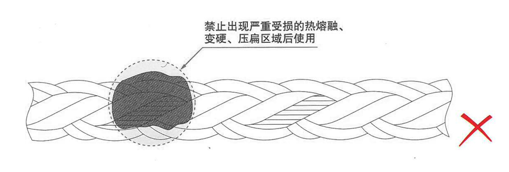 6、繩出現(xiàn)嚴(yán)重受損的熱熔融、變硬、壓扁區(qū)域。