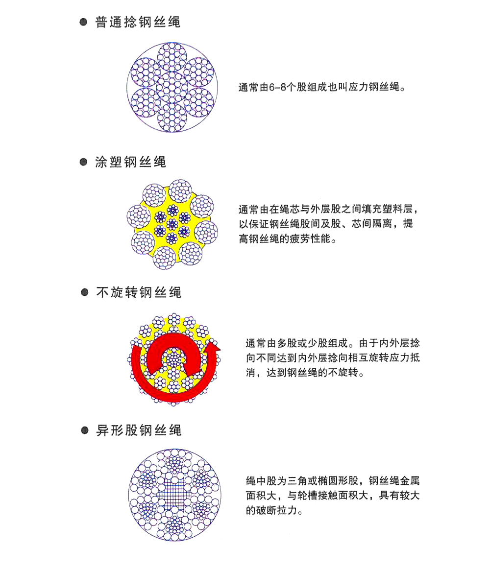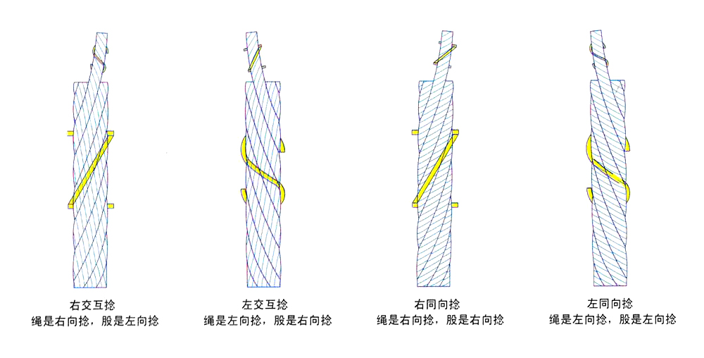 鋼絲繩的捻向通常分為右交互捻,左交互捻,右同向捻,左同向捻四種。