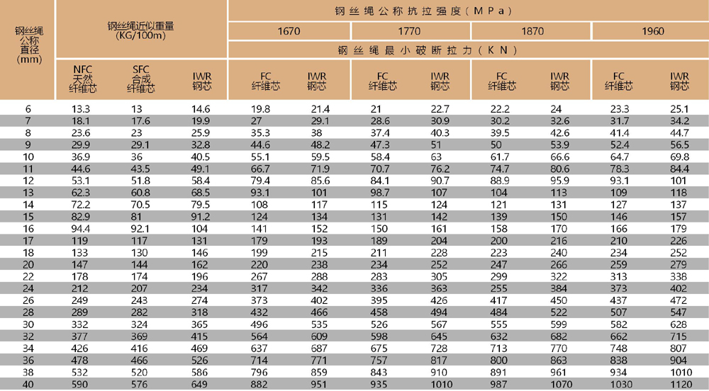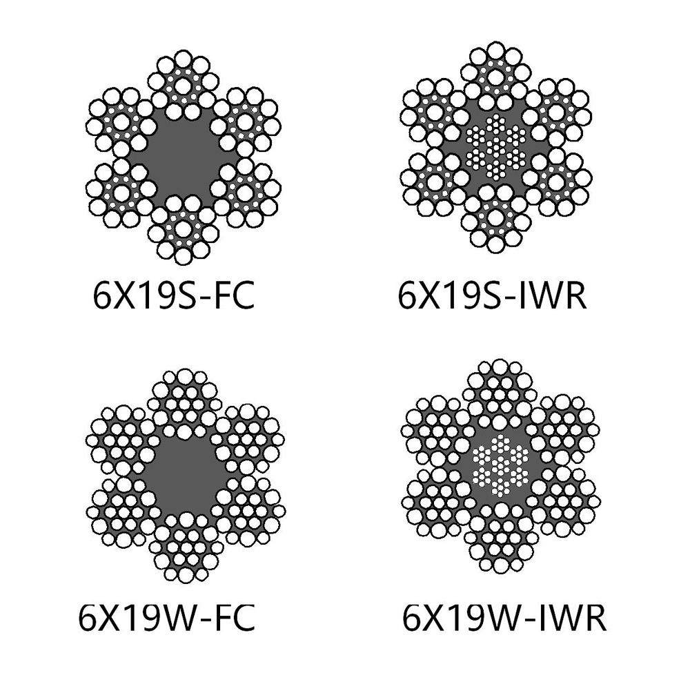 鋼絲繩結(jié)構(gòu):6X19S-FC 6X19S-IWRC 6X19W-FC 6X19W-IWRC