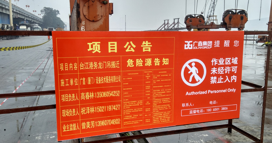 On March 31, 2017, Guangxin Equipment Company officially launched the relocation project of a rail-mounted gantry crane of "Fuzhou Port-Taiwan Port Company". The project adopts the method of assembly and closing after demolition and relocation. It is responsible for relocating a rail-type gantry crane from Fuzhou Kuiqi Wharf to the rear yard of Luoyuan Bay Ludao Wharf of Fuzhou Port, including disassembly, hoisting, transportation, installation and commissioning. Waiting for all work for turnkey project.
