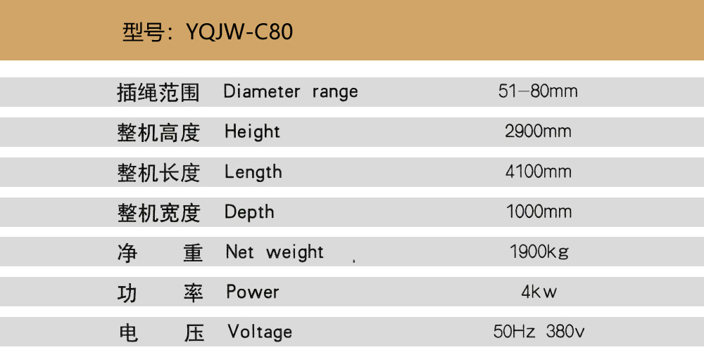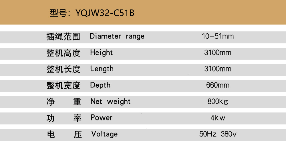 Product use: The steel rope inserting machine is a special rigging equipment that integrates the overall cutting of the steel wire rope, the inserting sleeves at both ends of the steel wire rope, the cutting and inserting of the steel wire strand head, and the shaping of the inserting part.