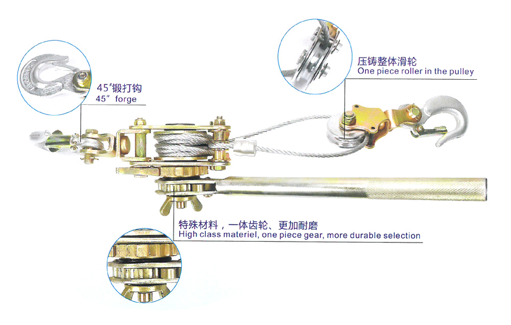 How to use: When in use, pull the handle by hand, drive the ratchet, and rotate the winding shaft. The rope has been tightened. When you need to loosen the rope, you only need to pull the claw handle to stop the tension of the claw spring, and the rope can be pulled out freely.