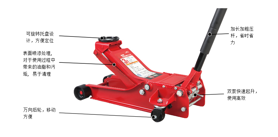 該液壓千斤頂利用重型車本身的自卸油泵或轉(zhuǎn)向助力油泵輸出的高壓油來實(shí)現(xiàn)千斤頂?shù)捻斊?,具有省時(shí)省力、使用和攜帶方便的優(yōu)點(diǎn),適用于自卸車、半掛車、平板車等重型車輛。