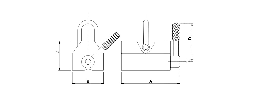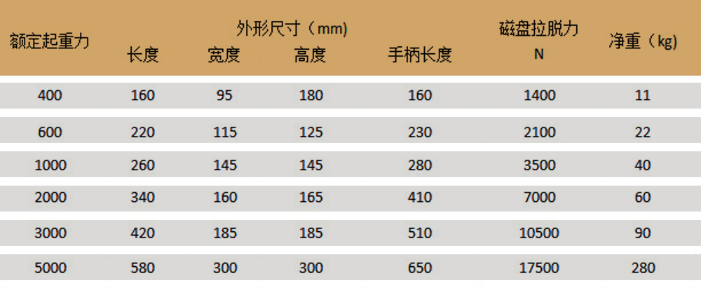 3.0倍的安全系數(shù)、吸力面底部V型槽設計,能吊起相對應的圓鋼,鋼板,是一種裝卸方便、快捷的磁性夾具。