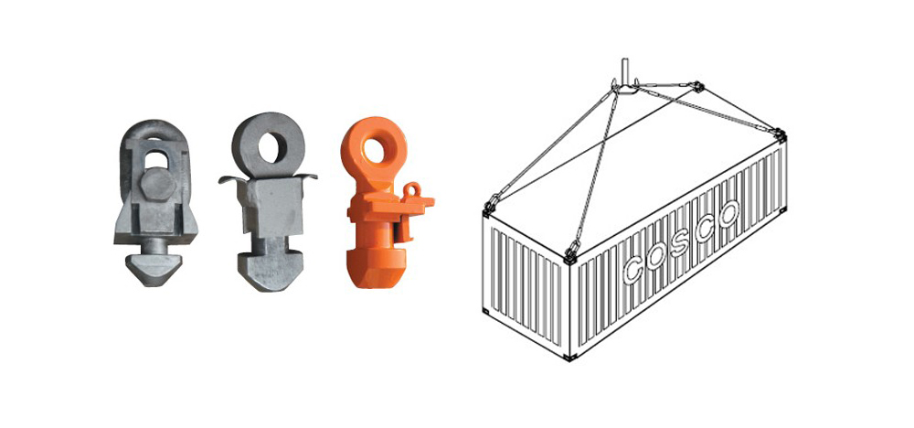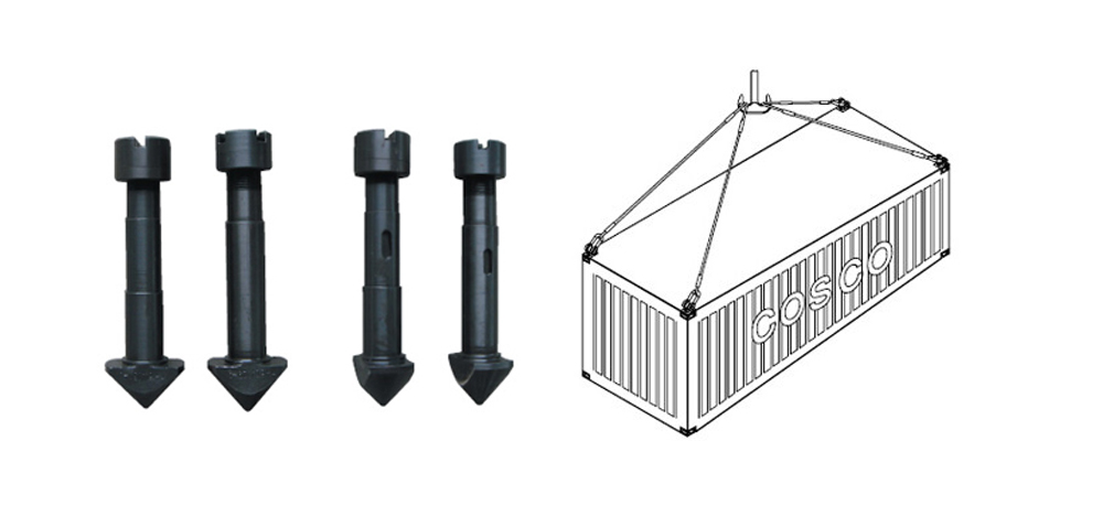 集裝箱鎖頭吊具系列有:吊環(huán)式和插片式及長軸式。