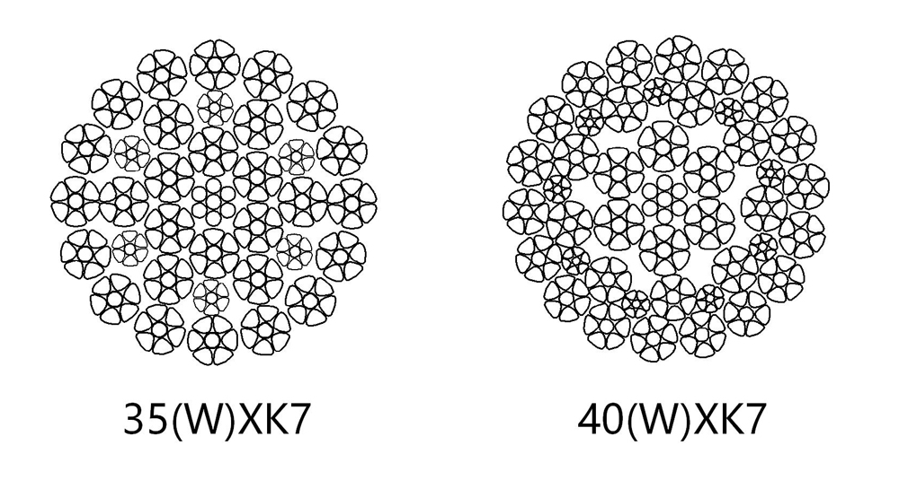 Wire rope structure: 35(W)XK7 40(W)XK7