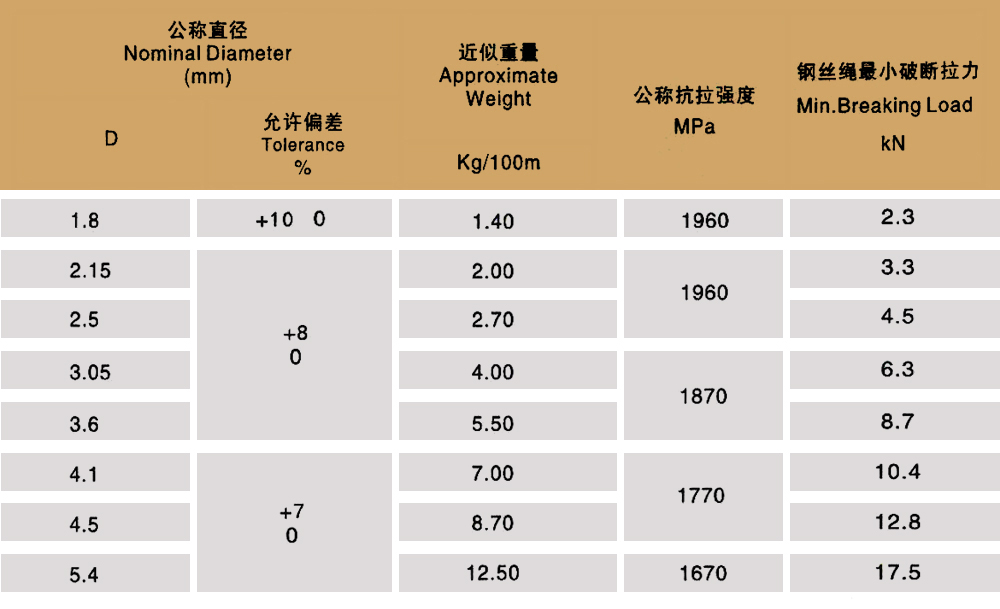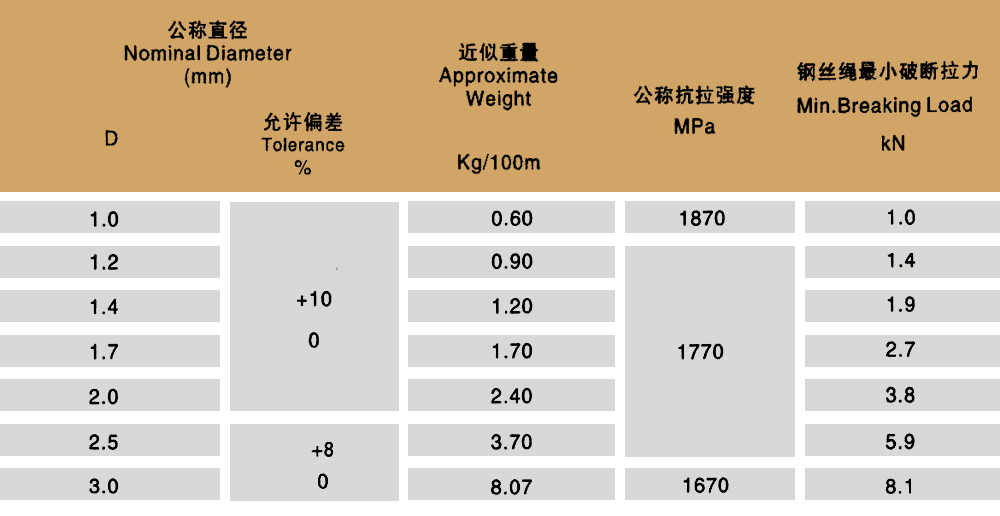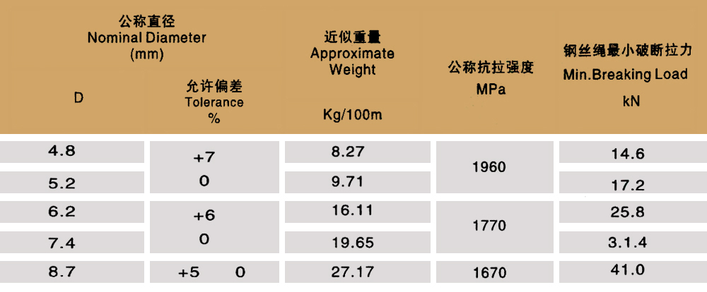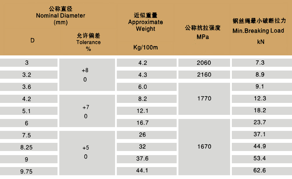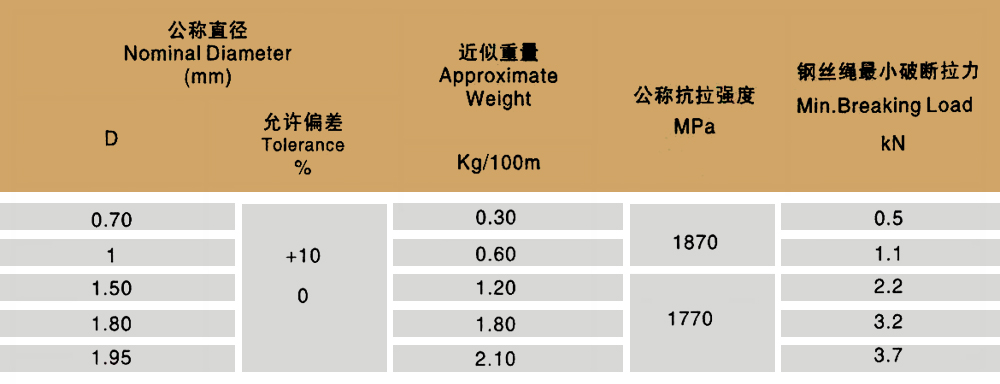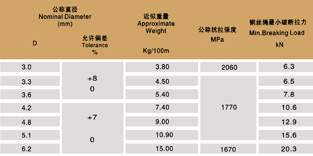 Product specifications: 1X7 1X19 6X7+IWS 6X19+IWS 6X7+FC 6X19+FC 6X37+FC