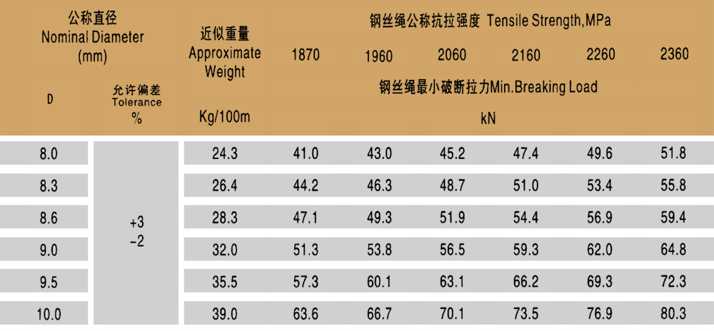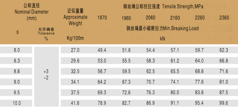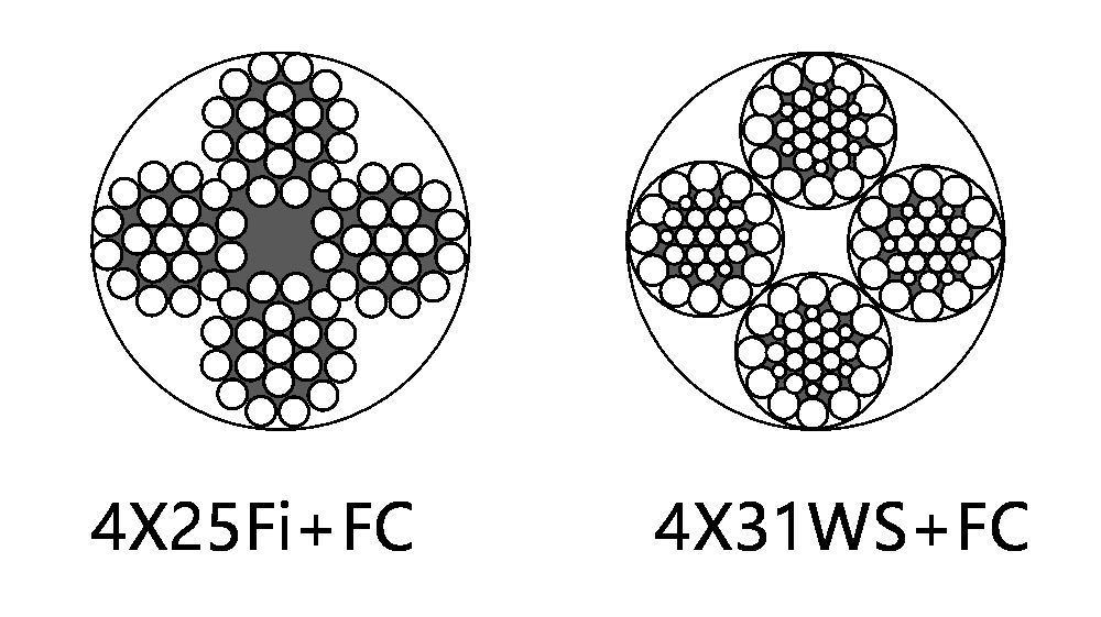 Specifications: 4X25Fi+FC 4X31WS+FC 6X19W+IWS 6X19S+IWR