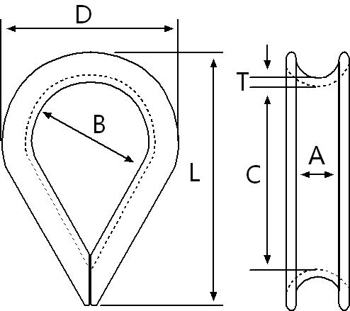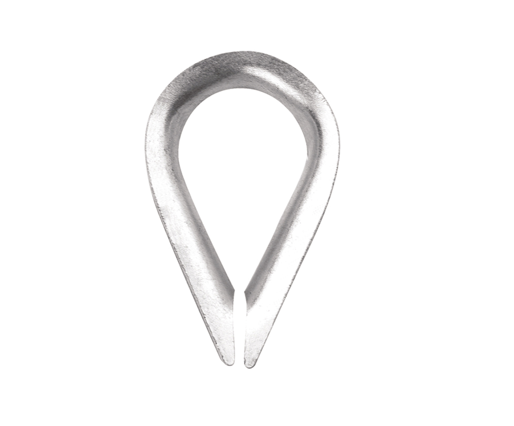鋼絲繩索具套環(huán)又稱雞心環(huán),帶有繩槽,供繩索末端環(huán)繞扎結(jié),以防繩纜過度彎曲和磨損,并可連接其他構(gòu)件的心型金屬環(huán)。