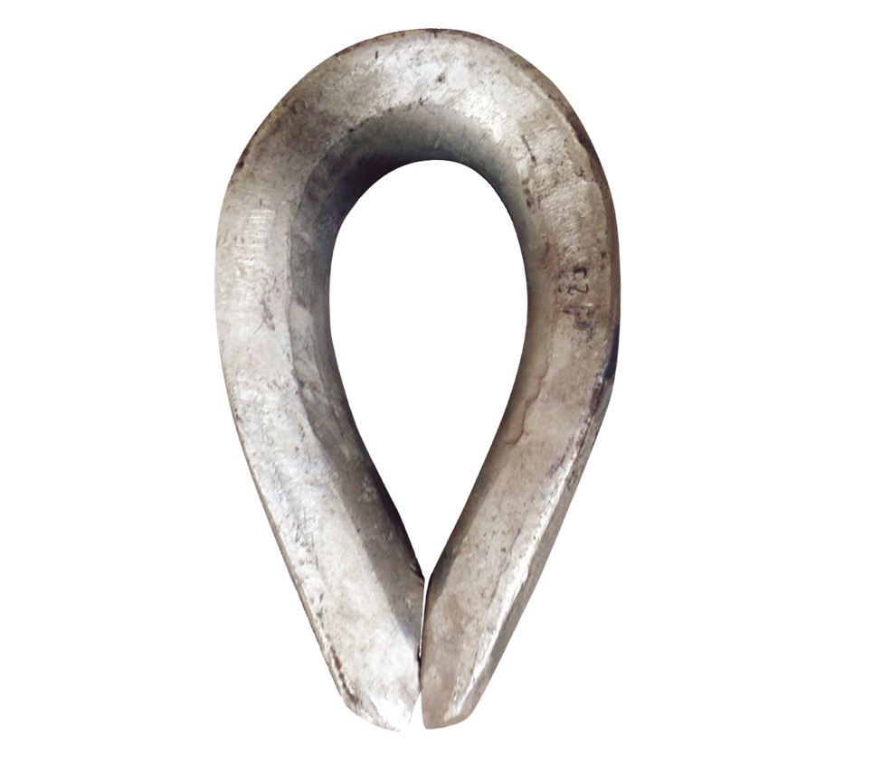 鋼絲繩索具套環(huán)又稱雞心環(huán),帶有繩槽,供繩索末端環(huán)繞扎結(jié),以防繩纜過度彎曲和磨損,并可連接其他構(gòu)件的心型金屬環(huán)。